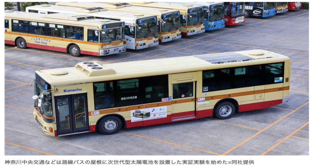 2025年11月から2026年3月にかけて、神奈川中央交通の路線バスの屋根にカルコパイライト太陽電池を搭載し、公道を走行する実験が行われます。発電した電力で空調や電装品を補助し、燃費改善とCO2削減を目指します。